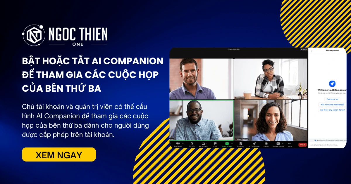 Chủ tài khoản và quản trị viên có thể bật hoặc tắt AI Companion để tham gia các cuộc họp của bên thứ ba dành cho người dùng được cấp phép trên tài khoản. Bật cài đặt này cho phép người dùng mời Zoom AI Companion tham gia các cuộc họp trên nền tảng của bên thứ ba, chẳng hạn như Microsoft Teams và Google Meet, nhằm mục đích tạo bản ghi và tóm tắt cuộc họp AI Companion.
