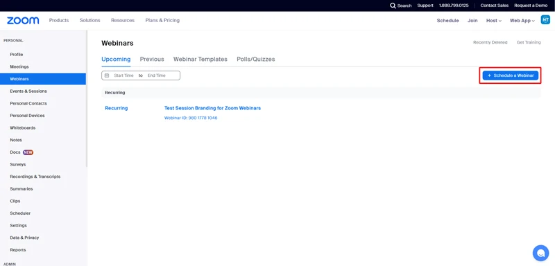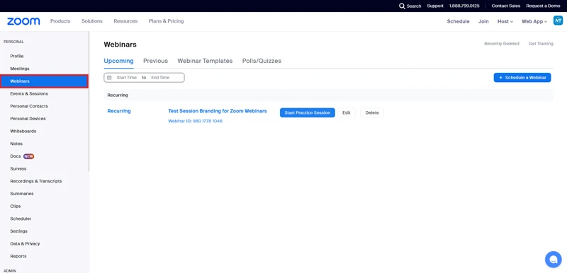 Danh sách các webinar đã lên lịch sẽ xuất hiện.