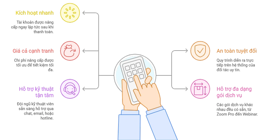 Khác với việc mua Zoom giá rẻ không rõ nguồn gốc, nâng cấp chính chủ giúp bạn tránh tình trạng bị thu hồi tài khoản, mất dữ liệu hoặc vi phạm điều khoản sử dụng của Zoom.