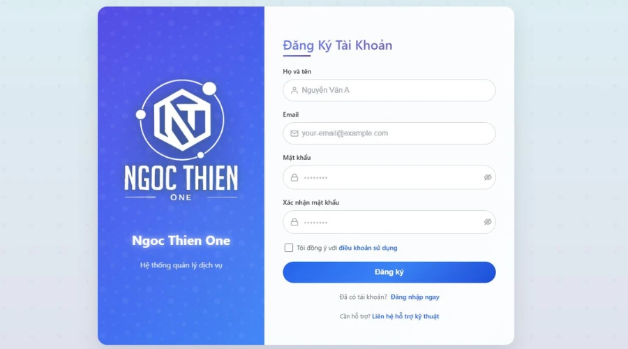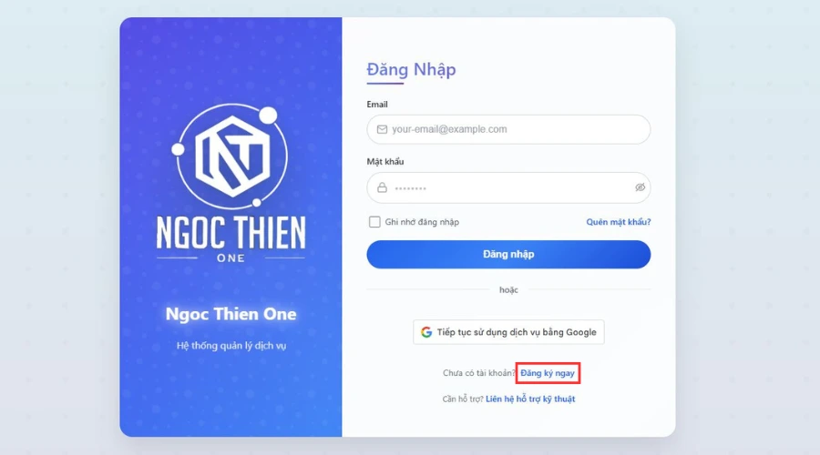 - Truy cập hệ thống nâng cấp Zoom tự động: cs.ngocthien.one, nhấp chọn Đăng ký ngay.