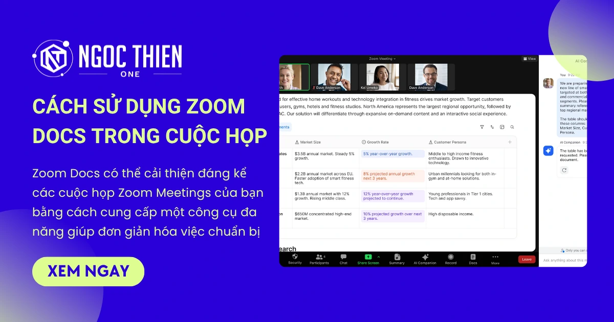 Cách họp nhanh trong Cuộc họp Zoom khi đang làm việc trong Zoom Docs