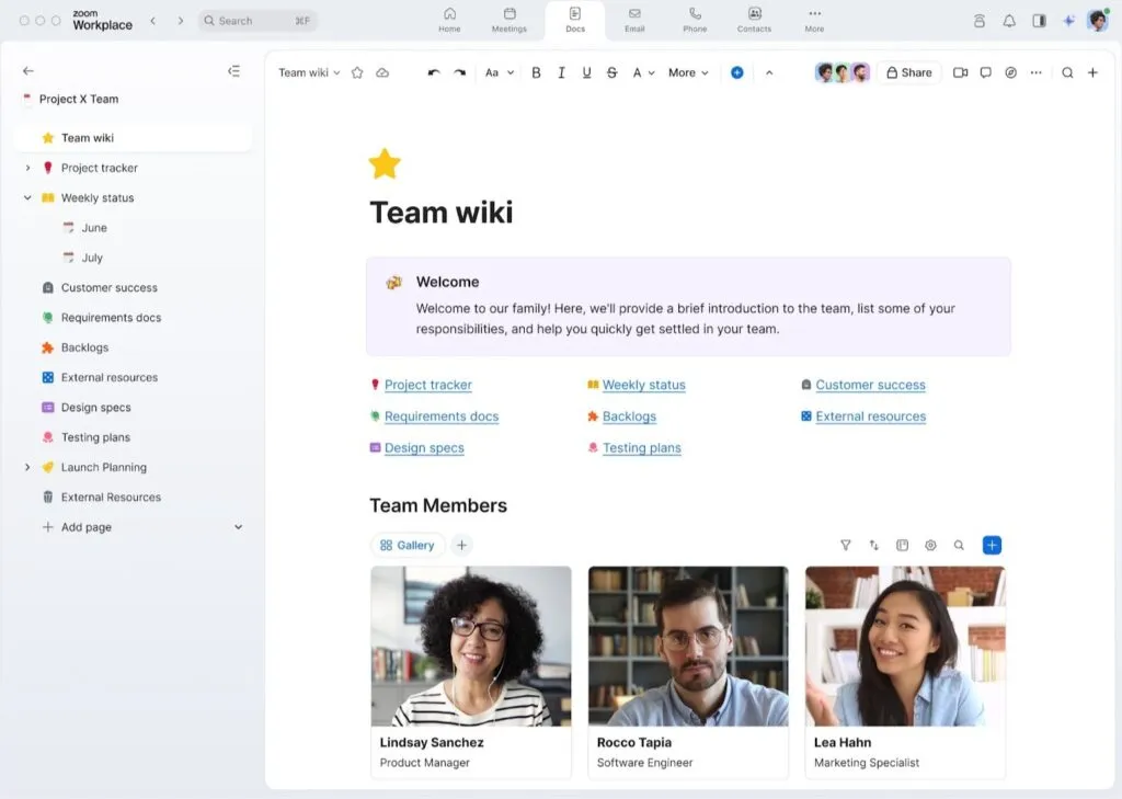 Zoom Docs là giải pháp linh hoạt, cộng tác được giúp tạo tài liệu, wiki, bảng biểu và nhiều nội dung khác trong Zoom Workplace. AI Companion là tính năng cốt lõi, được cung cấp miễn phí trong các gói trả phí đủ điều kiện.*