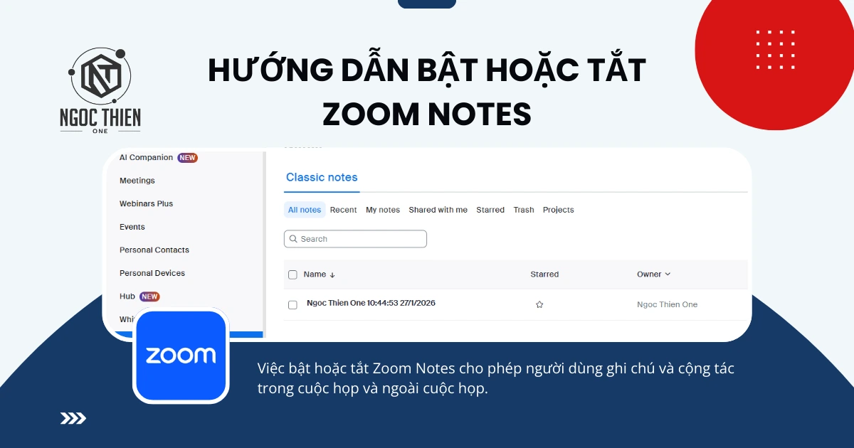 Hướng dẫn bật hoặc tắt Zoom Notes trong cuộc họp
