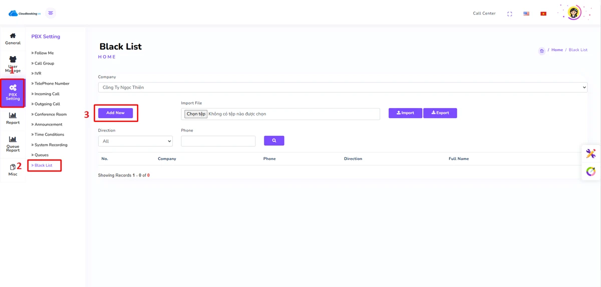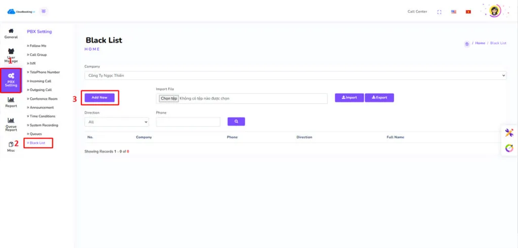 Các bước chặn số gọi vào tổng đài – Tổng đài Cloudbooking