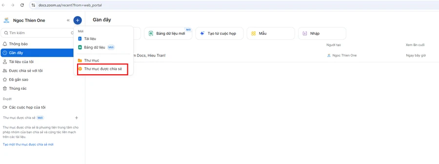 Tạo thư mục được chia sẻ trong Zoom Docs
