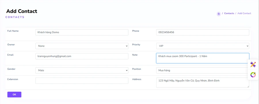 Hướng dẫn cách tạo Contacts – Cloudbooking