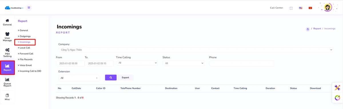 Hướng dẫn xem báo cáo cuộc gọi trên tổng đài Cloudbooking