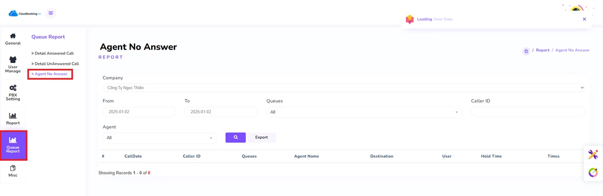 Thống kê agent không trả lời trong Call Center (Queue)