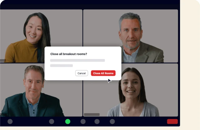 - Khi đã sẵn sàng kết thúc phiên theo nhóm, bạn có thể nhấp vào “Đóng phòng”, thao tác này sẽ gửi thông báo cho người tham gia để họ tham gia lại phiên chính.