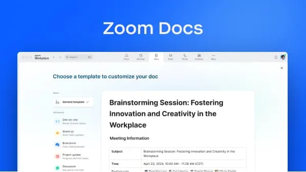 - Tính năng mới “Docs không giới hạn”: Một điểm nổi bật mới của gói Zoom Workplace Pro là khả năng tạo tài liệu không giới hạn với Docs. Tính năng này giúp người dùng dễ dàng quản lý và truy cập tài liệu cần thiết cho công việc mà không bị giới hạn về số lượng.