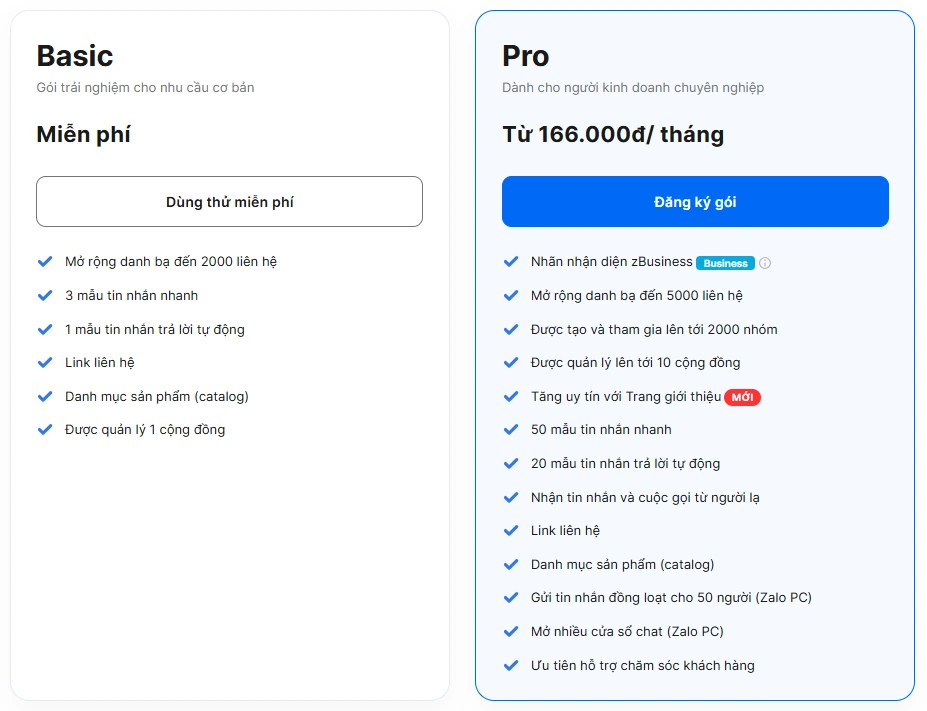 - Sử dụng gói tài khoản Zalo Business chính hãng
