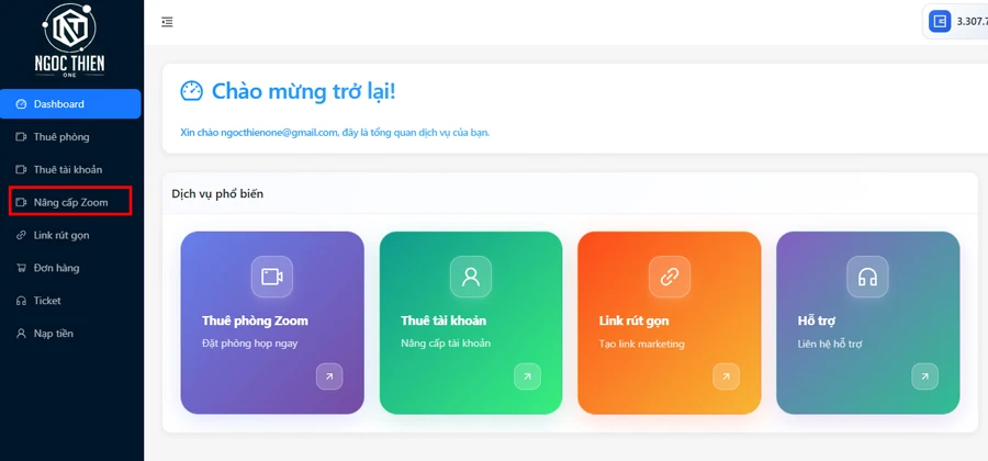 Các bước nâng cấp Zoom 300 người theo tháng tại cs.ngocthien.one