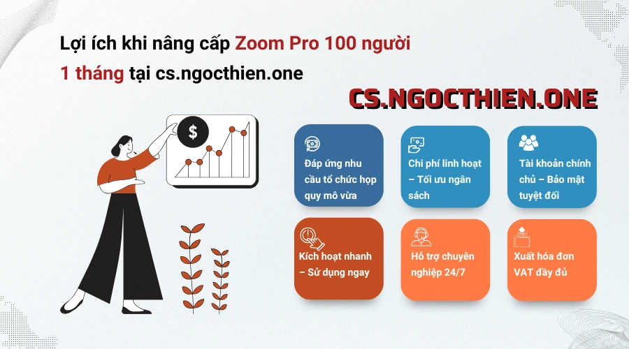 Chọn Zoom Pro 100 người 1 tháng tại cs.ngocthien.one không chỉ giúp bạn tiết kiệm chi phí mà còn đảm bảo mọi cuộc họp, lớp học hay hội thảo trực tuyến diễn ra mượt mà và an toàn.