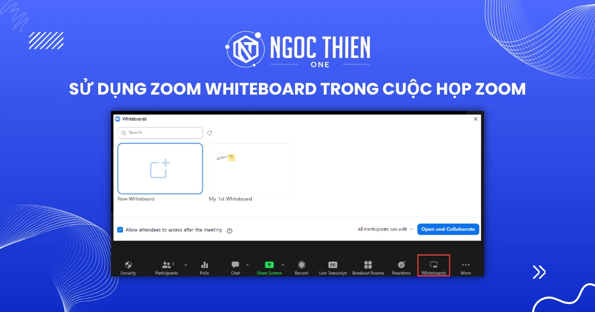 - Trong thanh công cụ điều khiển cuộc họp, hãy nhấp vào nút Whiteboards [Bảng trắng]