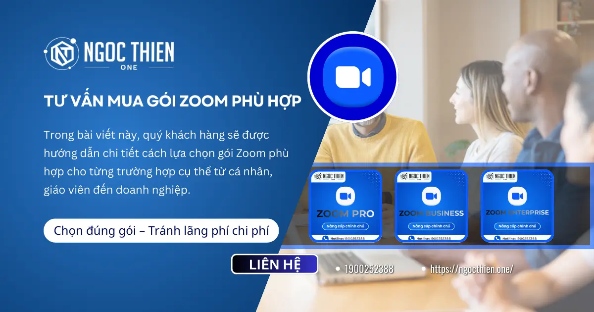 Nếu bạn vẫn đang phân vân chưa biết nên chọn gói nào, hoặc cần tư vấn chi tiết theo mô hình sử dụng cụ thể: Liên hệ NTO 1900252388 để được tư vấn và báo giá. Đội ngũ chuyên viên sẽ hỗ trợ bạn lựa chọn gói Zoom phù hợp nhất, tối ưu chi phí và triển khai nhanh chóng.